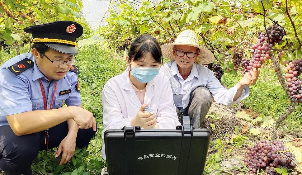 近日,江西省于都縣農業、市場監管部門聯合檢測人員深入到梓山鎮御提園葡萄基地,對即將上市的葡萄進行抽檢。為切實抓好上市葡萄安全監管工作,該縣農業、市監部門聯合檢測人員不定期對縣內的水果、蔬菜生產基地進行現場抽檢,確保市民吃上放心果蔬。
