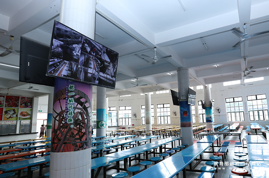 在珠海市第一中學食堂,通過電視屏幕可實時對食物的制作過程進行監控。學校秉承“預防為主、全程監控、屬地管理、學校監督”的管理原則,強化食品安全管理制度落實和規范建檔工作。為深入貫徹落實全國教育大會精神,由教育部新聞辦組織的“落實全教會 奮進迎華誕”1+1系列發布采訪活動走進珠海,就校園食品安全專項整治工作進展成效對珠海市第一中學、香洲區第十六小學進行了采訪。(張勁松/攝 王唯 李佩/文)