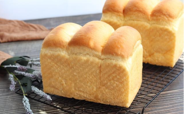 15.出爐后輕震一下模具,脫模,面包表面可刷上一層薄薄的黃油,在晾架上放至手溫裝袋保存。
