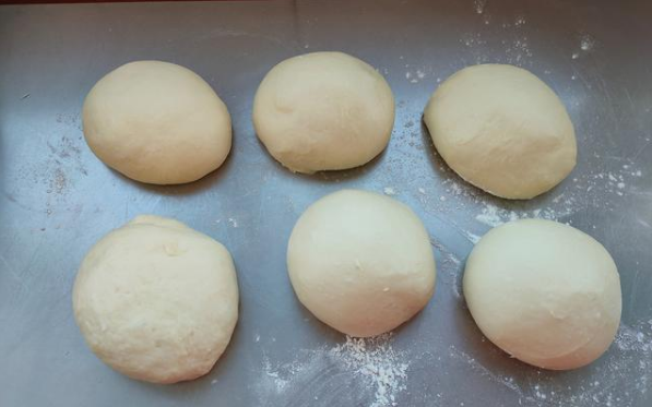 7.將面團稱重均分為6個小面團,滾圓,蓋保鮮膜松弛5-10分鐘。