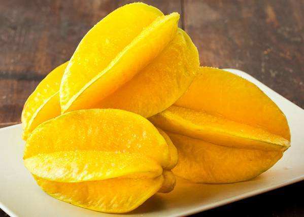 4.清熱利咽 楊桃果實中含有大量的揮發(fā)性成分、胡蘿卜素類化合物、糖類、有機酸及維生素B、C等,可消除咽喉炎癥及口腔潰瘍,防治風火牙痛。 食用方法:楊桃外型美觀、獨特,顏色呈翠綠鵝黃色,皮薄,果肉脆滑、鮮嫩且酸甜可口,里面含有充足的水分。除了可以鮮吃外,部分地區(qū)的人在吃楊桃時還會用一些“獨特”的方法,比如說海南人吃楊桃習慣粘上少許的鹽和辣椒,這樣吃起來別有一番風味,會越吃越上癮;三亞人則常用酸楊桃配鮮魚同煮,其湯既甜中帶酸,又可以去除腥味。楊桃果皮呈蠟質(zhì),光滑鮮艷,爽甜多汁。楊桃性涼,含有多種營養(yǎng)成分,并含有大量的揮發(fā)性成分,帶有一股清香。在茶余酒后吃幾片楊桃,會感到口爽神怡,另有一番風味。小貼士:將楊桃搗爛敷面,每次敷面10—15分鐘,這樣有助于消除黑斑及面色的黑色素。