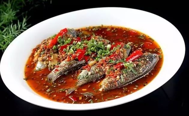 2.鍋里放化豬油和泡椒油燒熱,投入河鮮豆瓣、泡椒醬、泡椒節(jié)、干青花椒、泡蘿卜粒、泡青菜碎、蒜瓣和小米椒碎,炒香后摻鮮湯,在下入鯽魚燒制時(shí),加雞粉、味精、胡椒粉、醪糟汁、白糖和老陳醋調(diào)味,等收至鍋里汁將干時(shí),淋入藤椒油并出鍋裝盤,最后撒上藿香碎和蔥花即成。