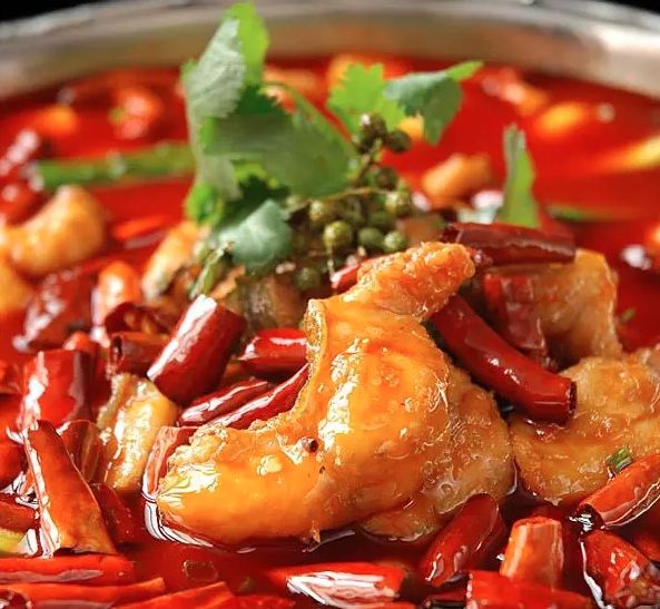3.另鍋放少許的色拉油燒熱,投入干辣椒節(jié)和青花椒熗香以后,倒在裝鯰魚的盤內(nèi),最后點(diǎn)綴些香菜葉,即成。