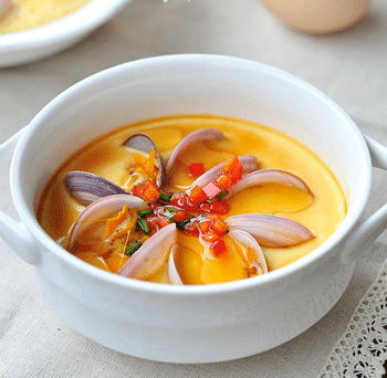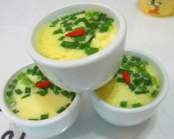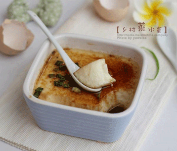 6、蒸好的蛋羹吃的時候淋上步驟5中的料汁即可。
