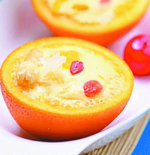 1、把牛奶、橙汁和細砂糖倒入碗里,隔熱水加熱不斷攪拌,直到白砂糖剛好融化即可。