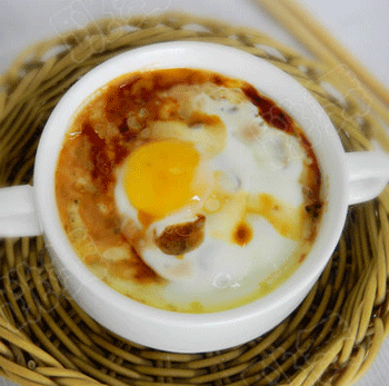 1、鴨蛋兩個、蔥少許、濃醇湯